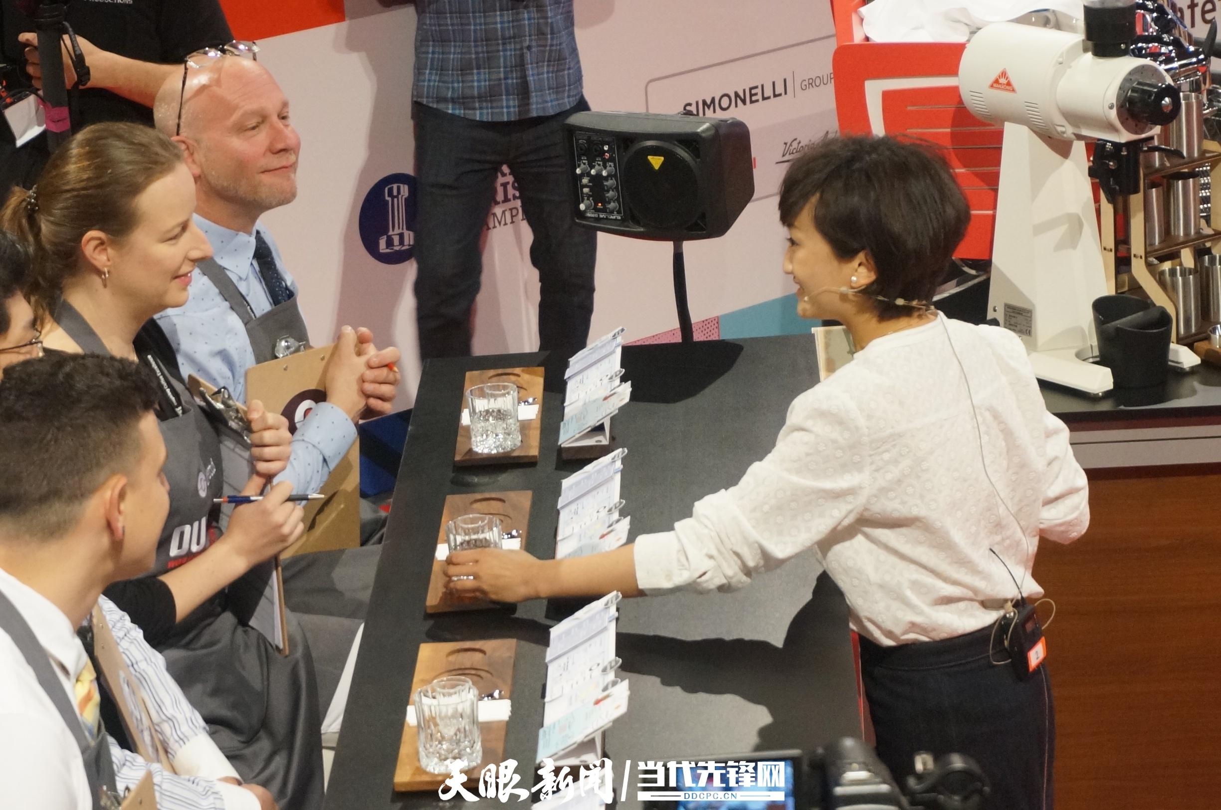 6月19日,贵阳市南明区中山西路对的咖啡门店,吧台后的咖啡师屏息等待,如同学生面对严师,这是对的咖啡门店咖啡师考核现场。
